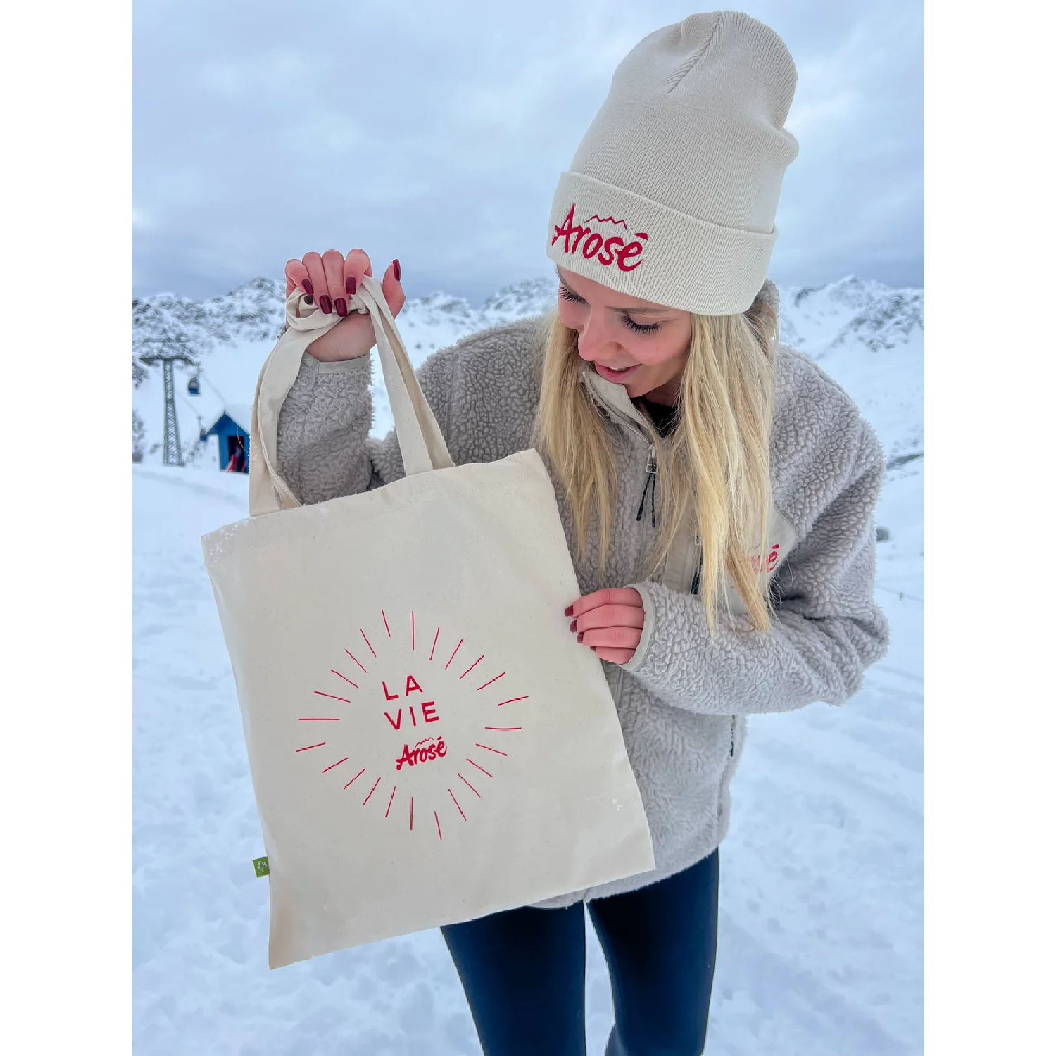 Notre sac en coton à l'impression stylée d'Arosé est le compagnon idéal de tous les jours. Le jeu de mots entre "Arosa" et "Rosé" se porte parfaitement lors du prochain apéro.